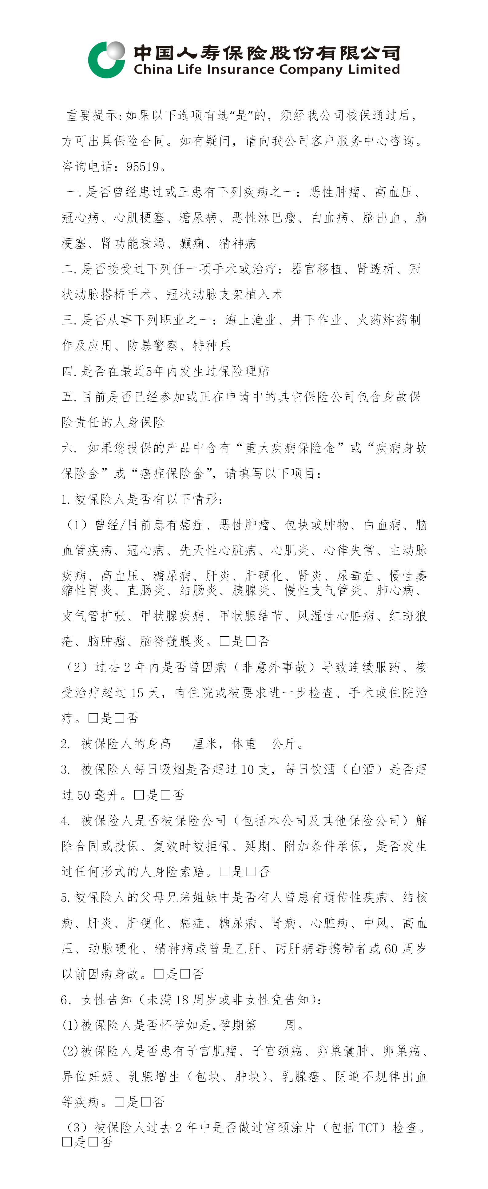 國(guó)壽鑫安寶兩全保險(xiǎn)健康告知